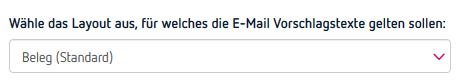 Wähle hierfür das Layout aus, für welches die E-Mail Vorschlagstexte gelten sollen.