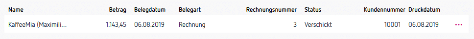 In der Übersichtsseite der Rechnungen ändert sich nun der Status der Rechnung auf „Verschickt“:
