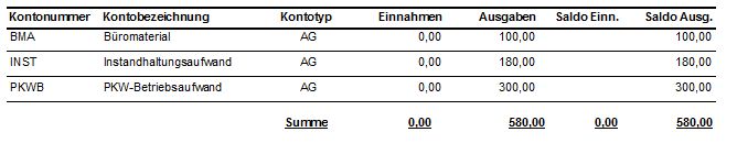 Drucke im zweiten Schritt die Saldenliste für E/A-Konten aus, und schau Konto für Konto durch, ob dieses für die Einkommensteuer-Erklärung relevant ist. Wenn ja, schaust du nun im Formular E 1a nach, welcher Kennzahl die Einnahme bzw. Ausgabe zuzuordnen ist.