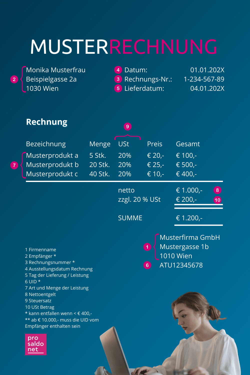 - Welche Informationen bei einer juristischen Person als Rechnungsempfänger nicht fehlen dürfen.