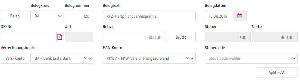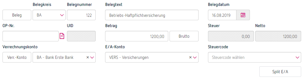 Versicherungsprämien verbuchen in E/A-Rechnung